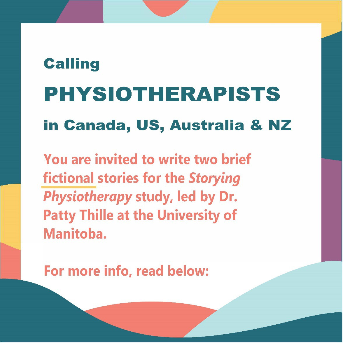 You are invited to write two brief fictional stories for the Storying Physiotherapy study, led by Patty Thille, PT, PhD at the University of Manitoba.